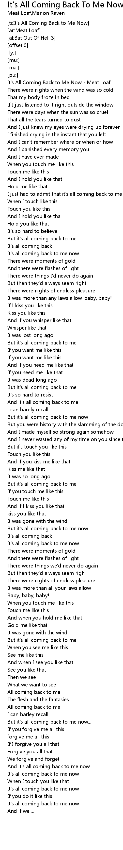 [ti:It's All Coming Back to Me Now] |