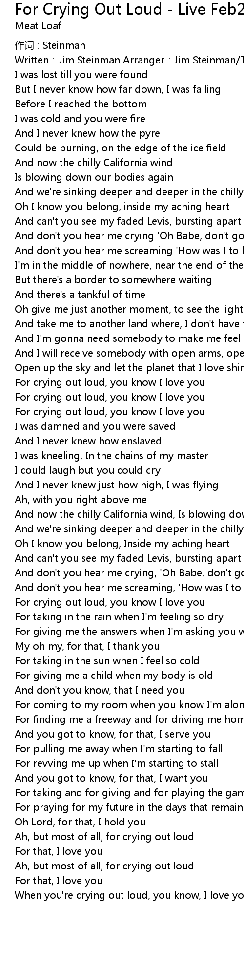 | When you're crying out loud, you know, I love you |
