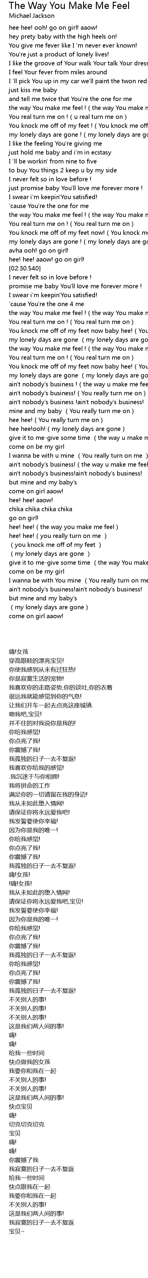 | [02:49.490] | the way You make me feel !(the way You make me feel) |