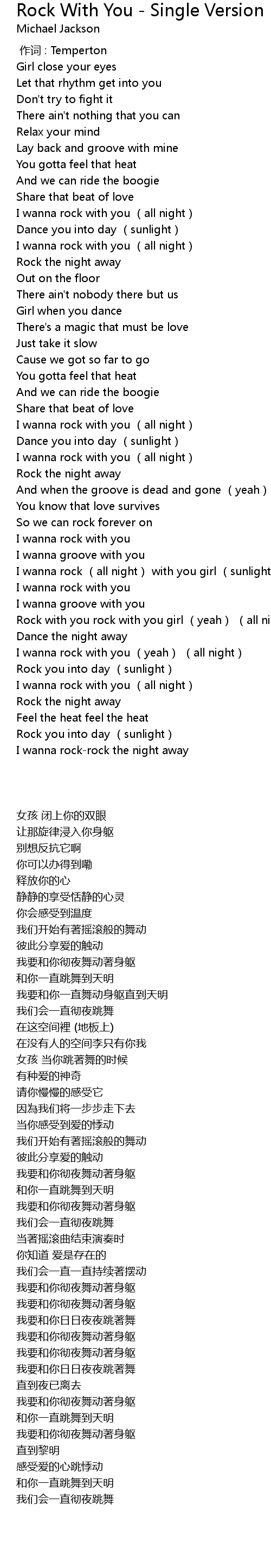 | [00:53.210] | I wanna rock with you (all night) |