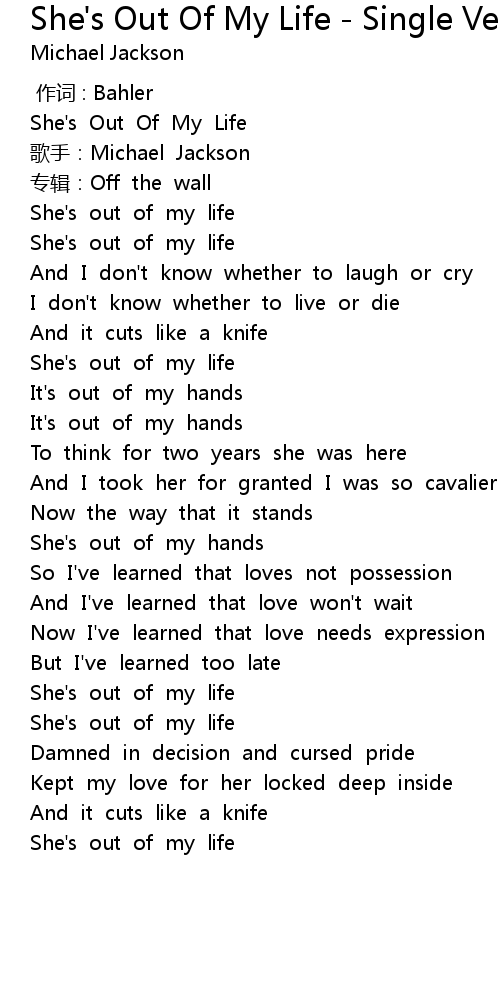 | [00:07.20] | She' s Out Of My Life |