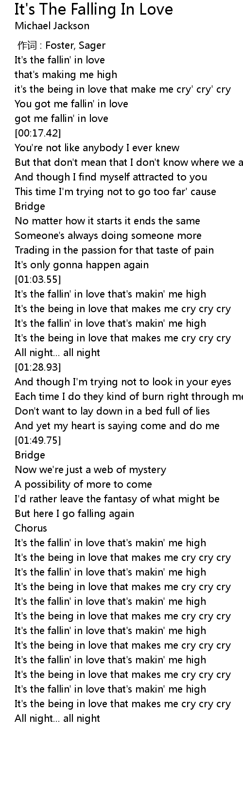 | [02:17.31] | It's the fallin' in love that's makin' me high |
