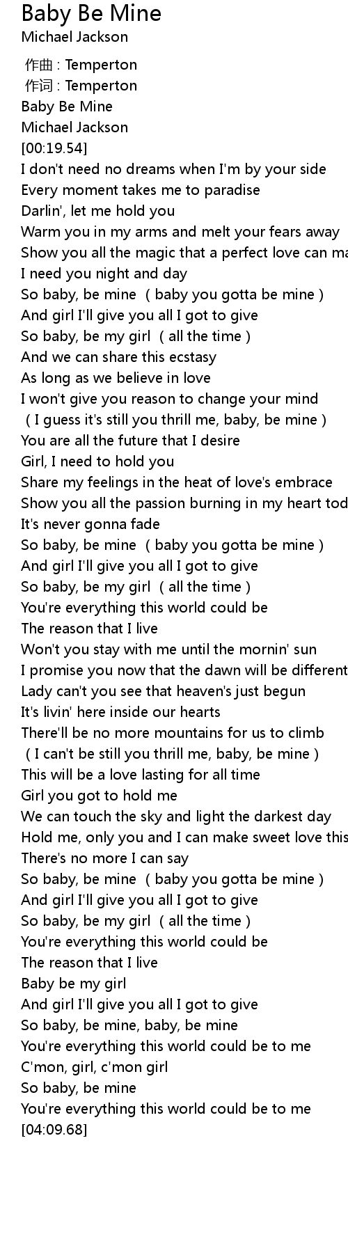 | [02:02.35] | So baby, be mine (baby you gotta be mine) |