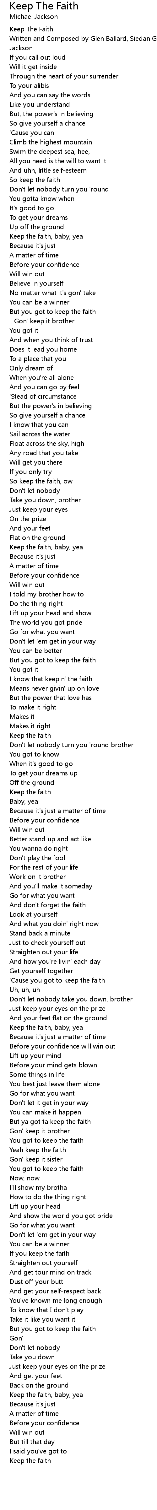But ya got ta keep the faith |