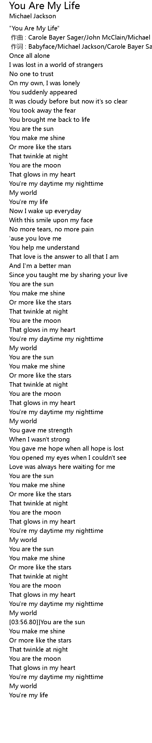 | [00:01.00] | 作词 : Babyface/Michael Jackson/Carole Bayer Sager/PJohn McClain |