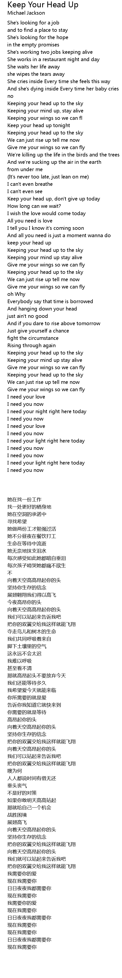 Keep your head up, don't give up today |