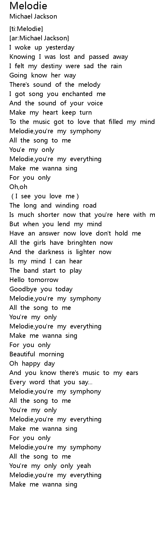 | [00:52.298] | Melodie, you' re my symphony |