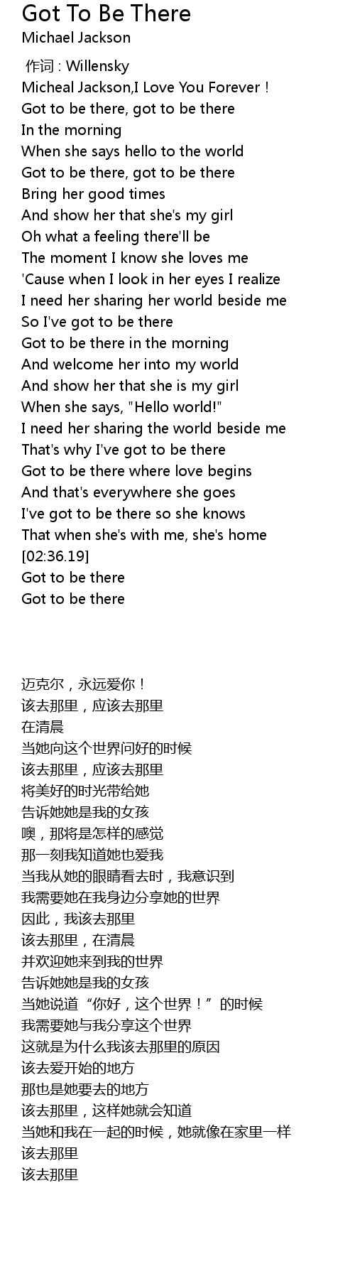 | [00:11.40] | Got to be there, got to be there |