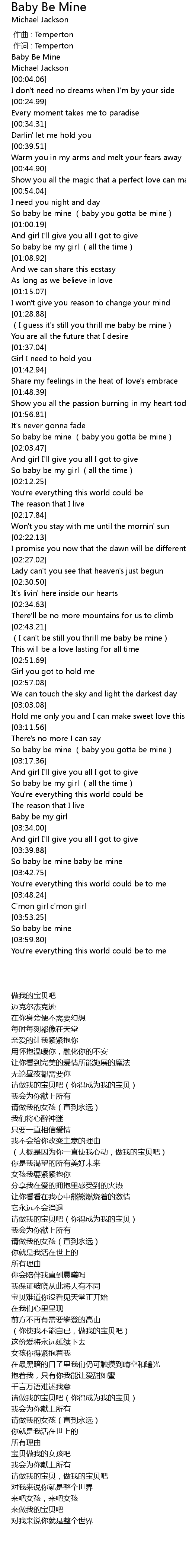 | [03:14.59] | So baby be mine (baby you gotta be mine) |
