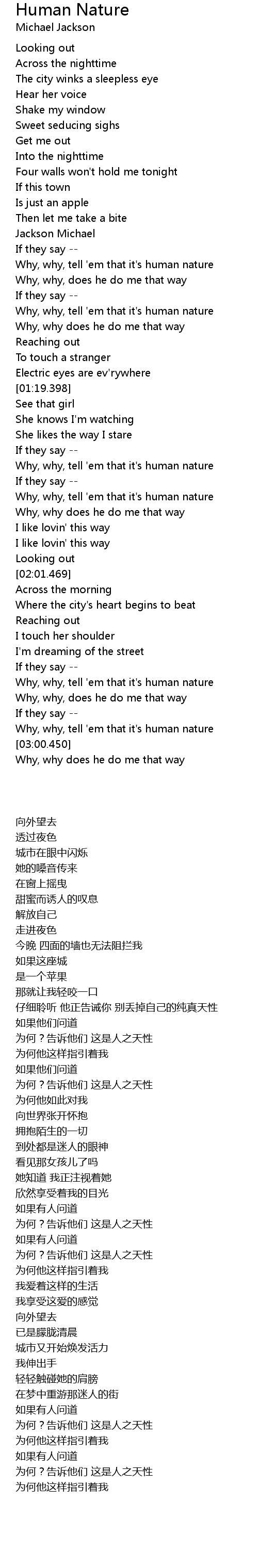 | [00:54.566] | Why, why, tell ' em that it' s human nature |