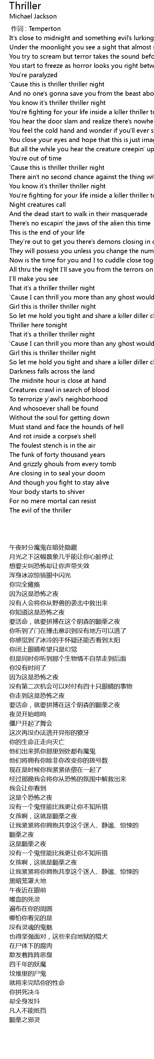 | [02:27.380] | 'Cause this is thriller thriller night |