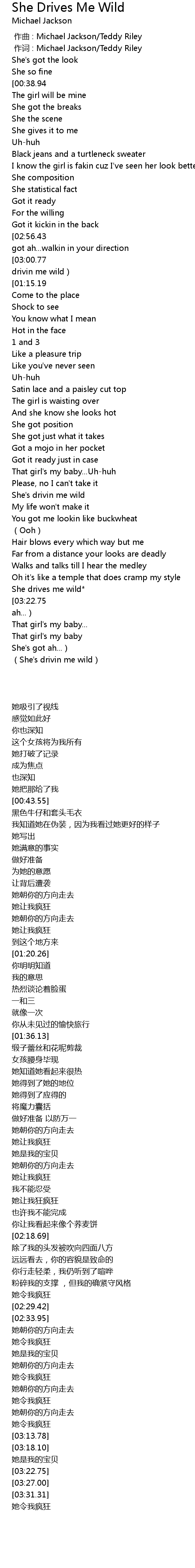 | [03:09.41][03:00.77][02:52.01][02:42.71][01:58.95][01:06.36] | She's got ah...she's drivin me wild) |