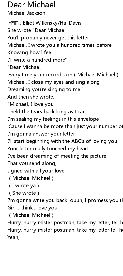 | [00:11.06] | Michael, I wrote you a hundred times before |