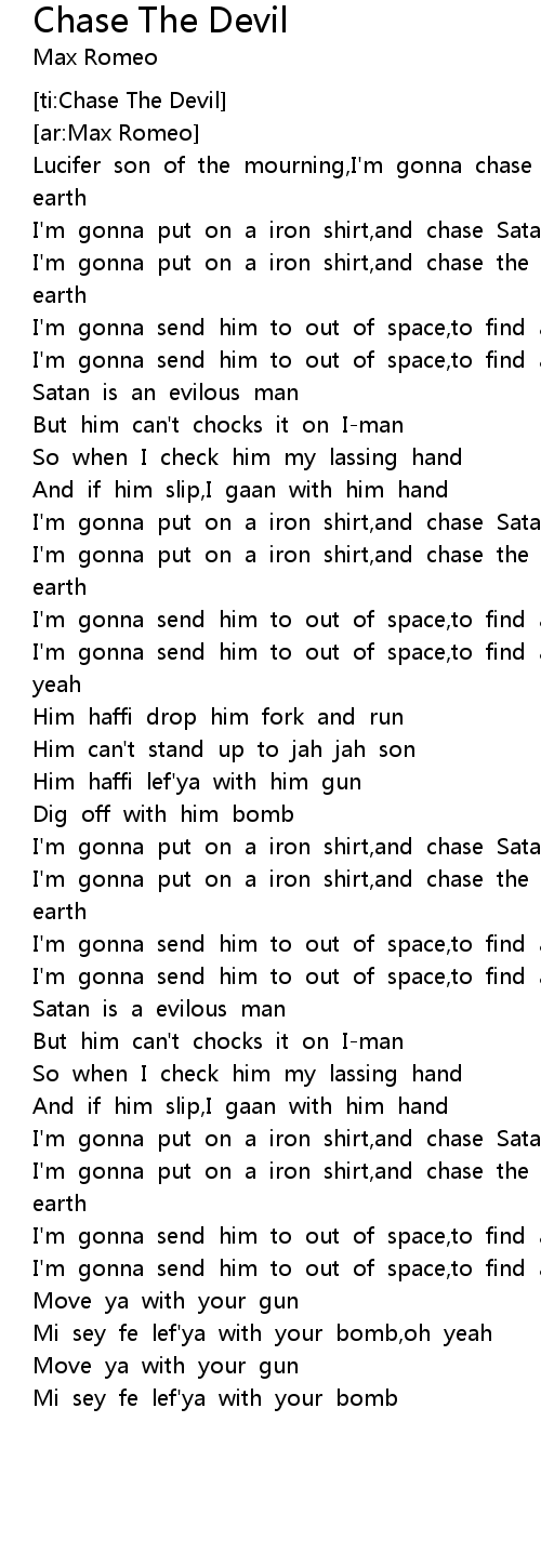 | [00:01.111] | Lucifer son of the mourning,I'm gonna chase you out of earth |
