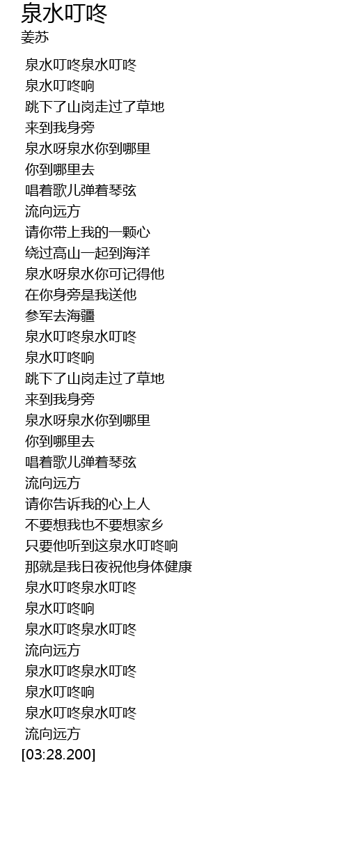 | [03:12.380] | 泉水叮咚泉水叮咚 |