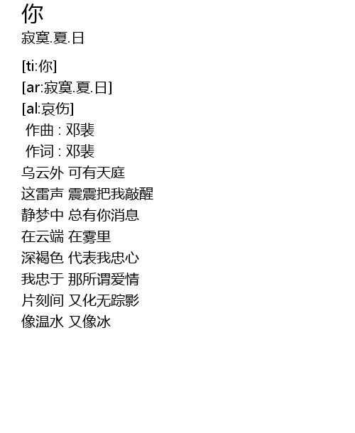 | [01:12.54] | jìng mèng zhōng zǒng yǒu nǐ xiāo xī |