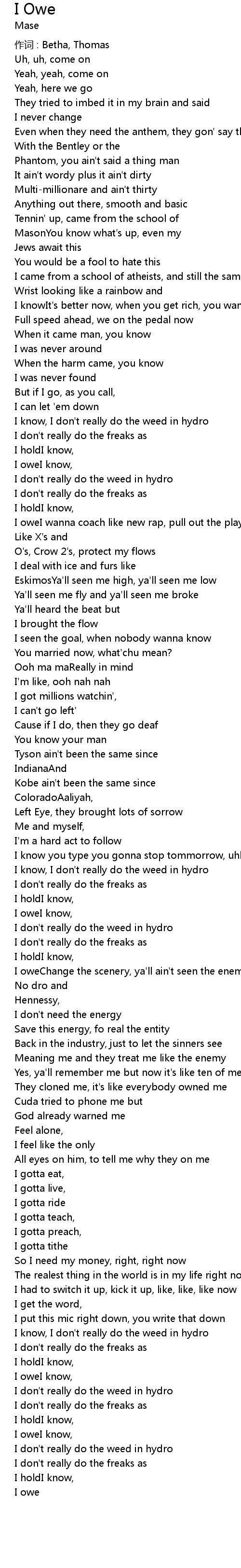 | I oweChange the scenery, ya'll ain't seen the enemy | |