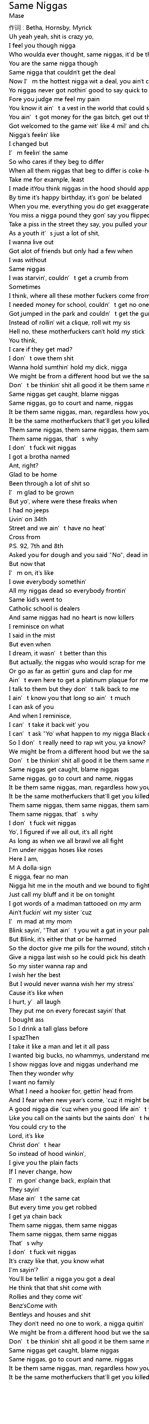 | Don’t be thinkin' shit all good it be them same niggas | |