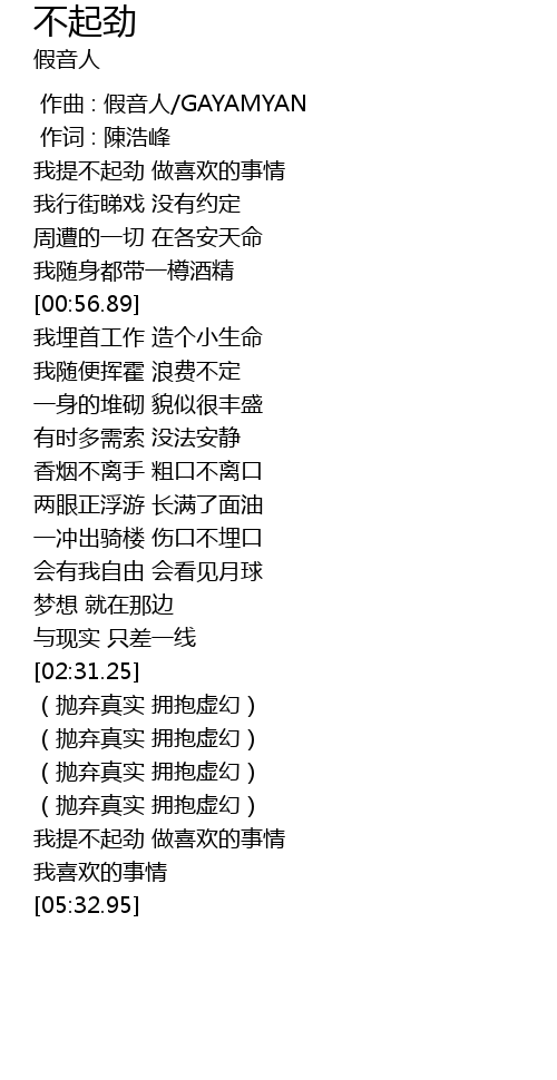 | [00:00.00] | 作曲 : 假音人/GAYAMYAN |