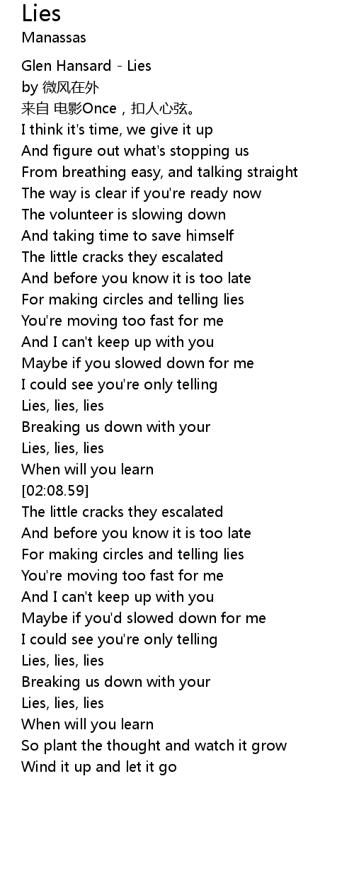 | [01:53.70] | Lies, lies, lies |
