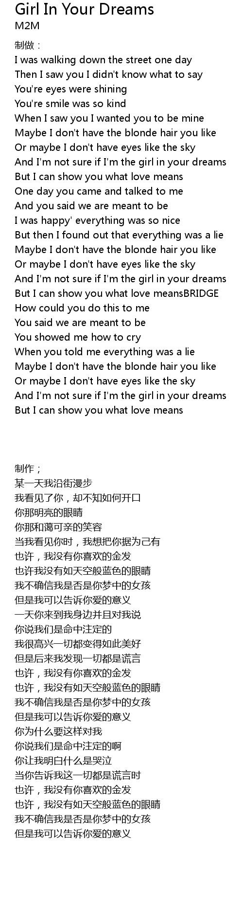 | [01:47.47] | And I' m not sure if I' m the girl in your dreams |
