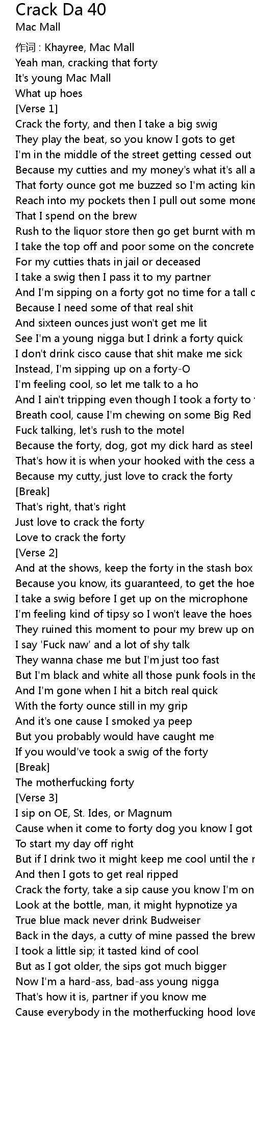| Because my cutty, just love to crack the forty | |