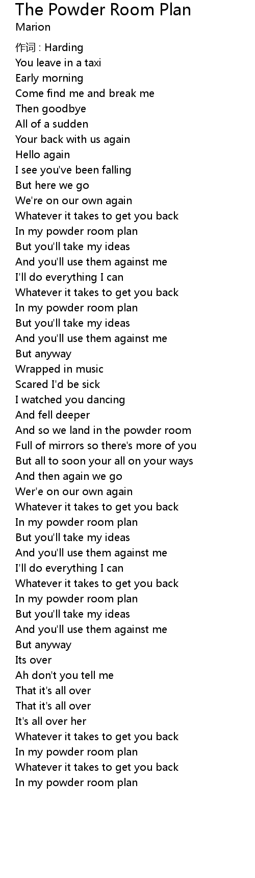 | Song | The Powder Room Plan |