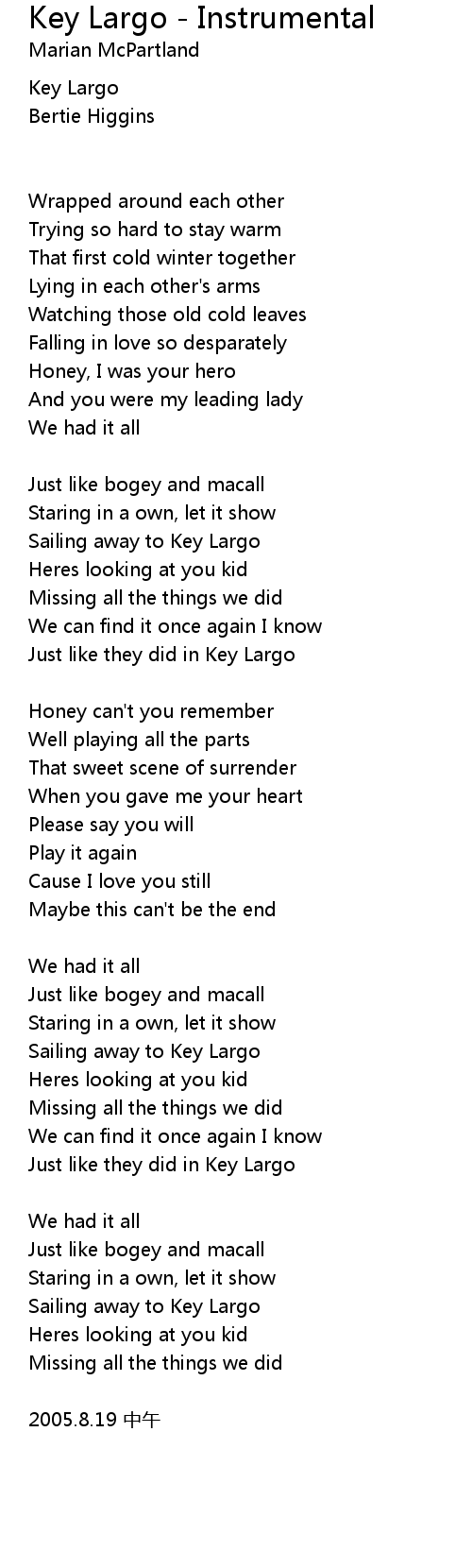 | Song | Key Largo - Instrumental |