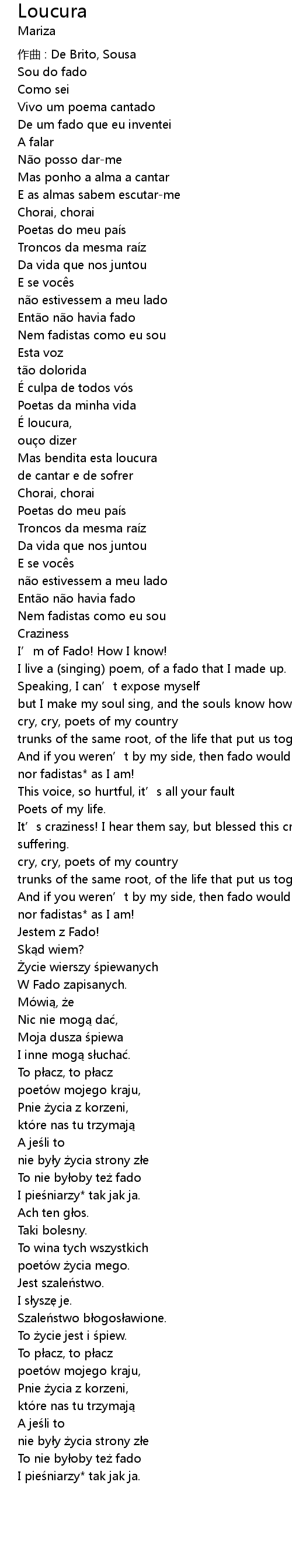 | It' s craziness! I hear them say, but blessed this craziness, of singing and suffering. | |