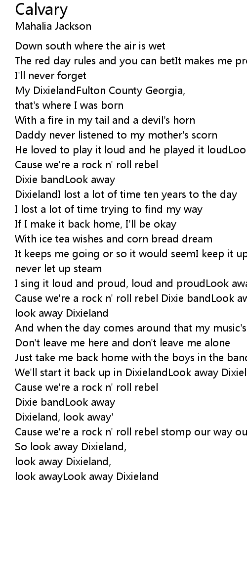 | I sing it loud and proud, loud and proudLook away Dixieland' | |