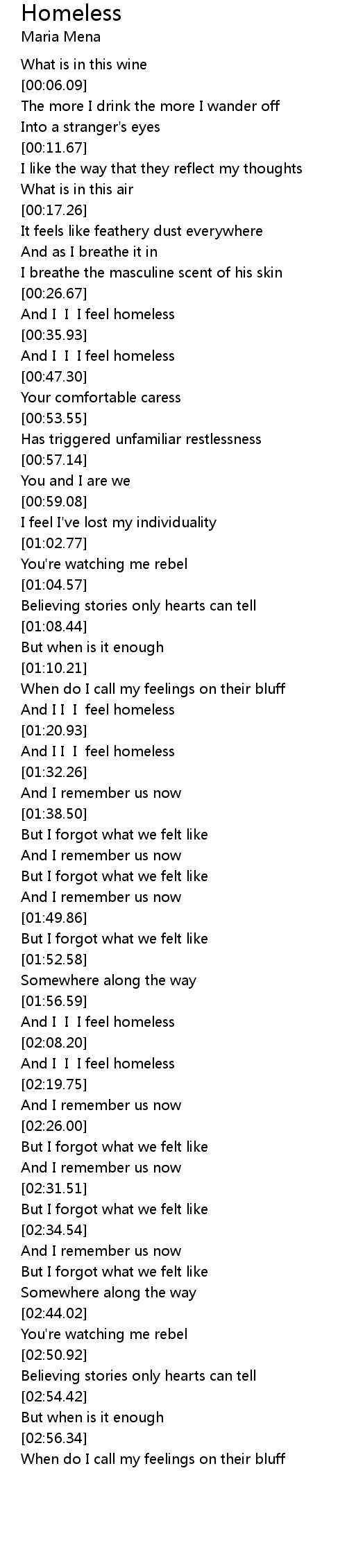 And I I I feel homeless |