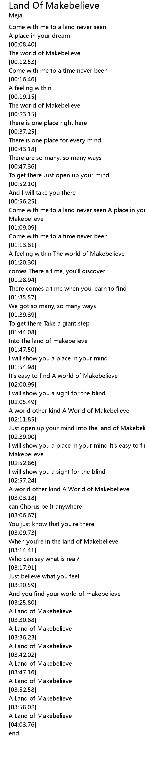 Come with me to a land never seen A place in your dream The world of Makebelieve |