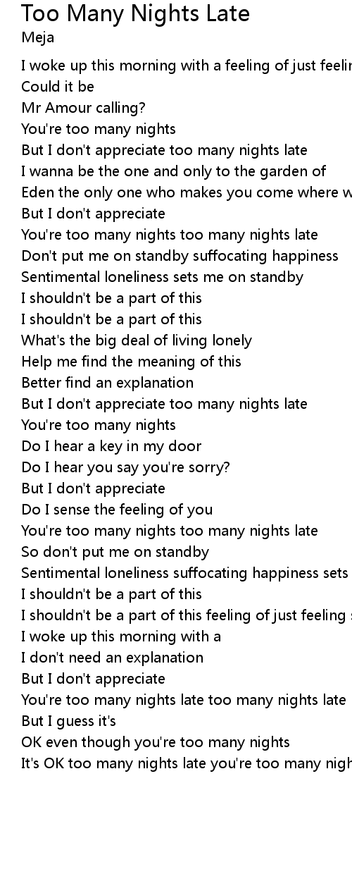 It's OK too many nights late you're too many nights too many nights late |