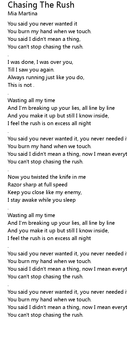 You can't stop chasing the rush. |