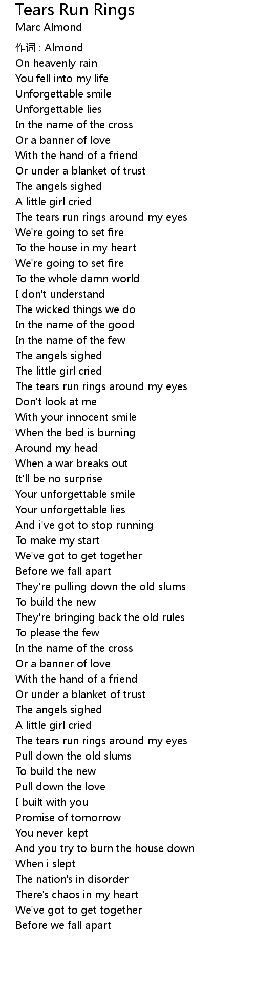 | Song | Tears Run Rings |