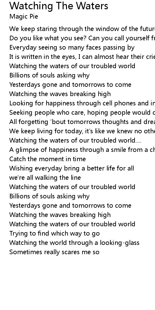 Watching the waters of our troubled world.... |