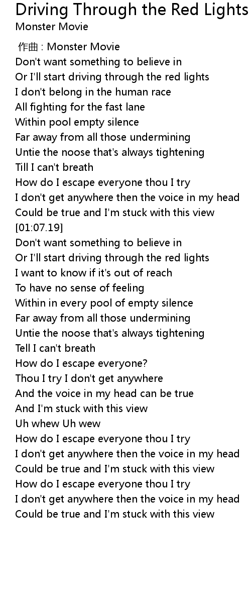 | [00:20.73] | Or I'll start driving through the red lights |