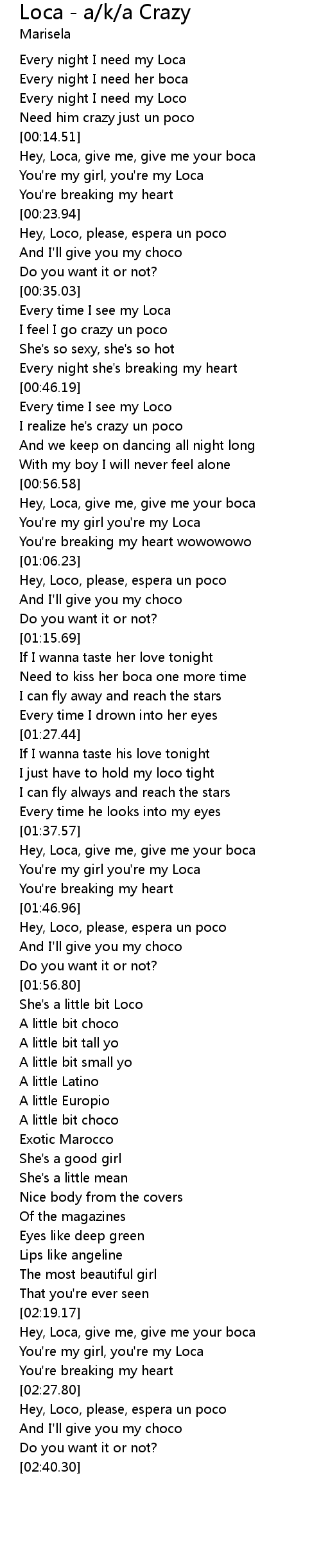 Loca - a/k/a Crazy Lyrics