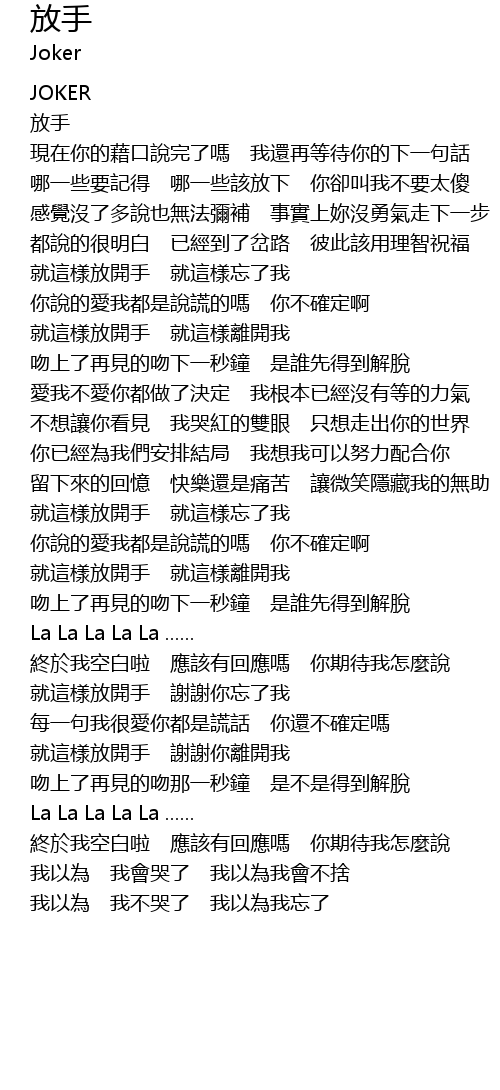 | 就這樣放開手 謝謝你忘了我 | |