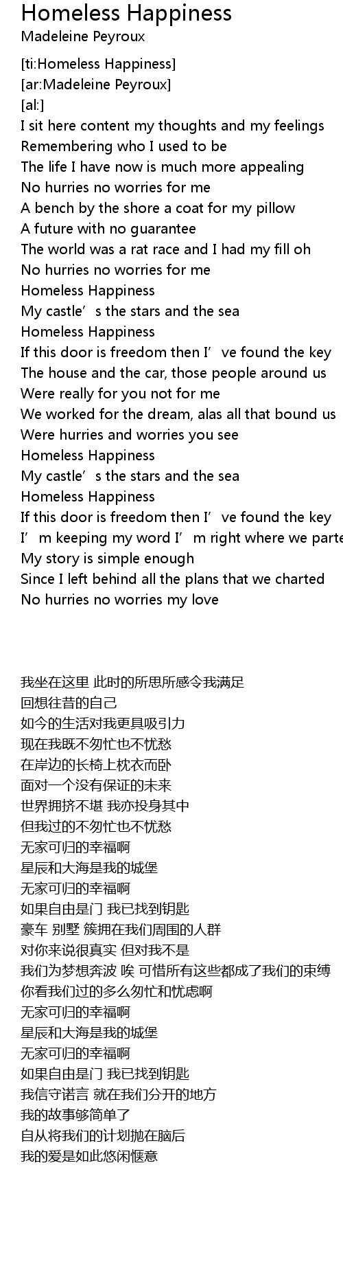 | [00:43.25] | A bench by the shore a coat for my pillow |