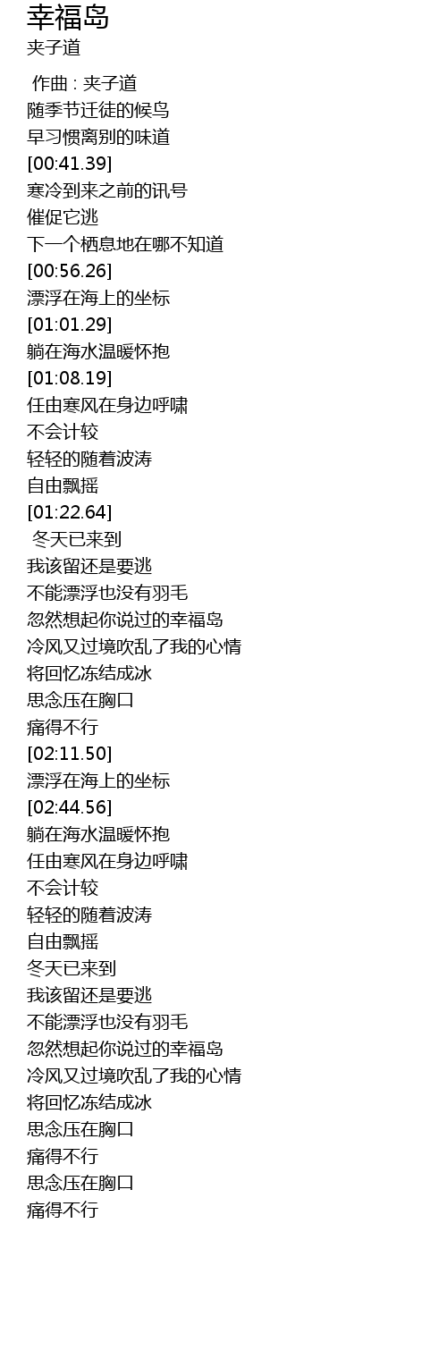 | [01:43.56] | 忽然想起你说过的幸福岛 |