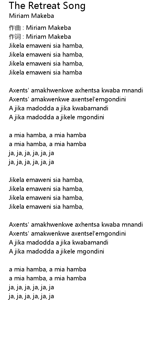 | 作词 : Miriam Makeba | |