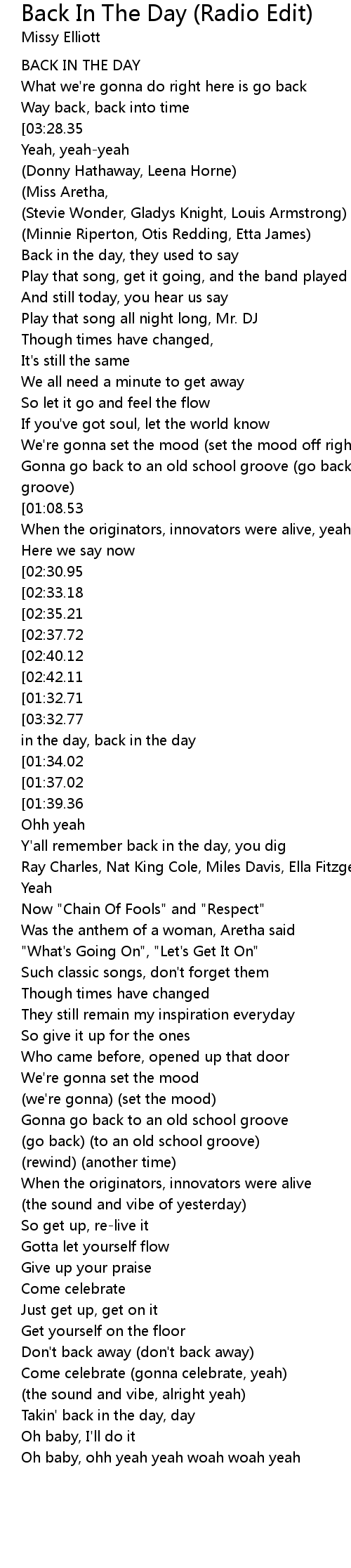 Takin' back in the day, day |