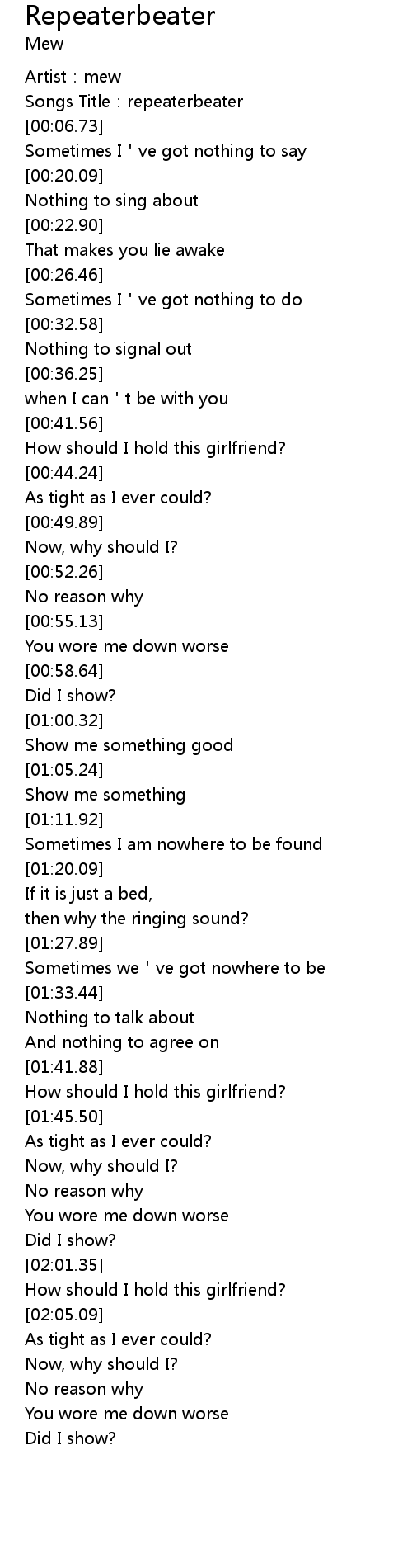 | [00:03.36] | Songs Title: repeaterbeater |