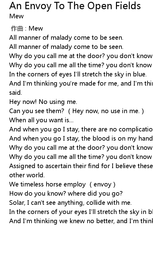 | Song | An Envoy To The Open Fields |