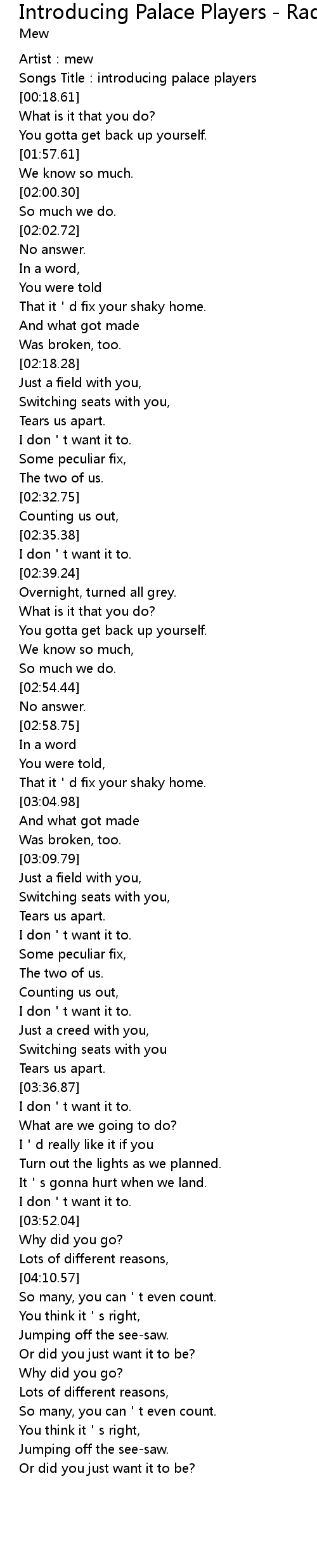 | [00:05.44] | Songs Title:introducing palace players |