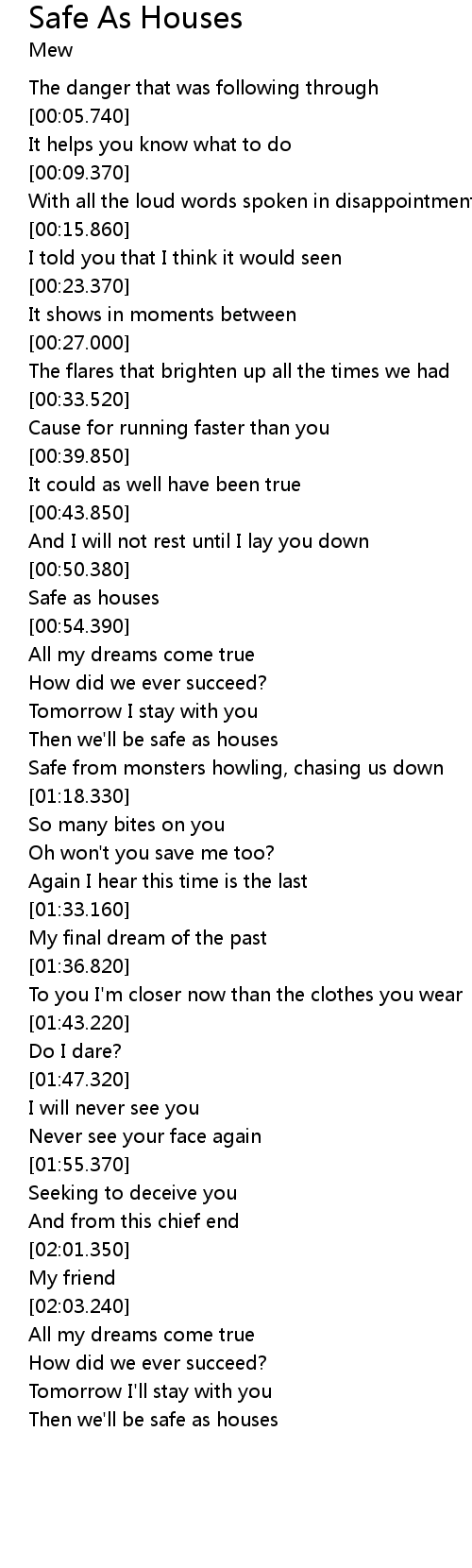 Then we'll be safe as houses |