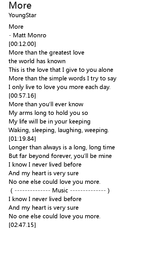 | [00:48.82] | I only live to love you more each day. |
