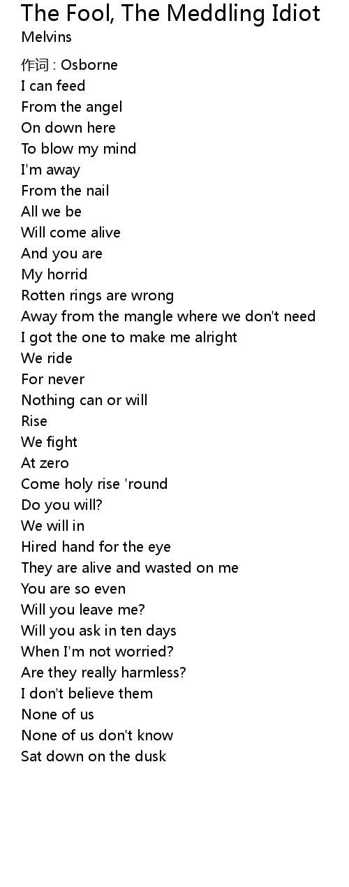 | Song | The Fool, The Meddling Idiot |
