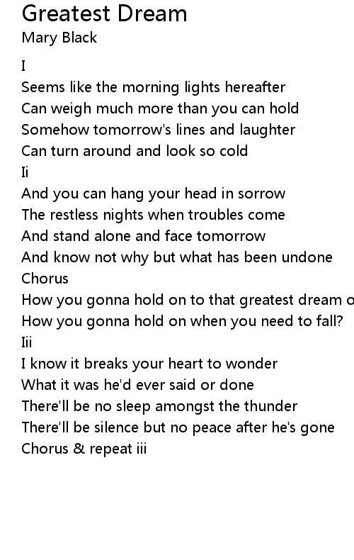 How you gonna hold on to that greatest dream of all? |